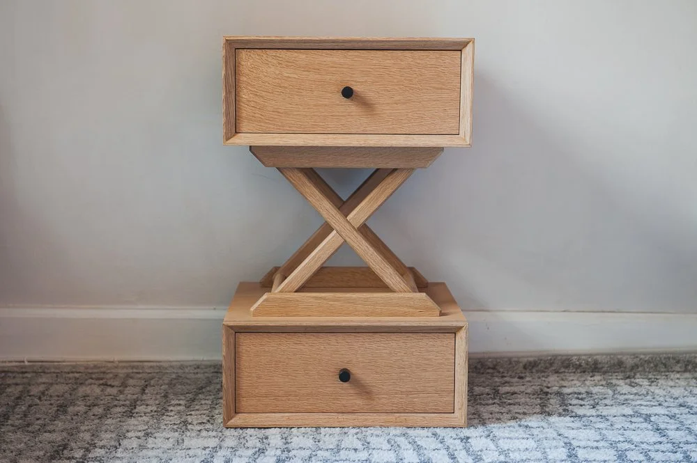 white oak night stand with cross supports